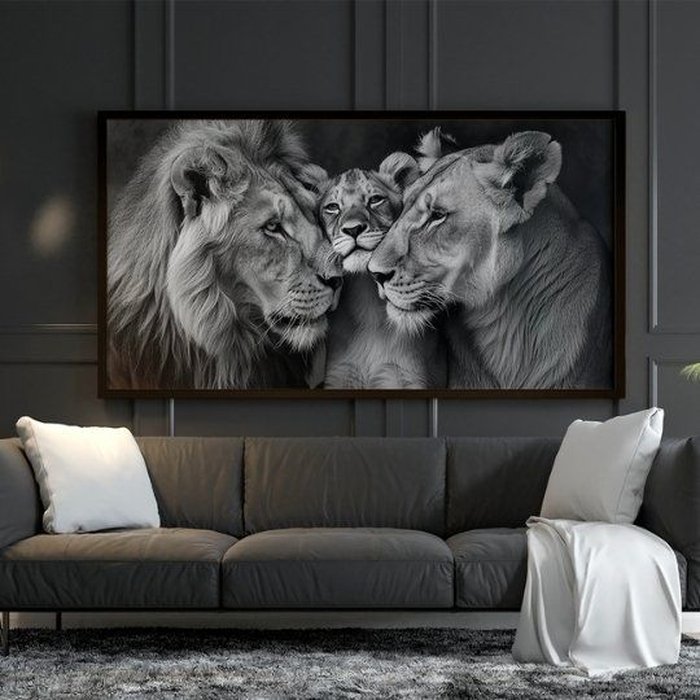 Observe o tamanho dos quadros em relação aos móveis e faça a melhor escolha para o seu ambiente.